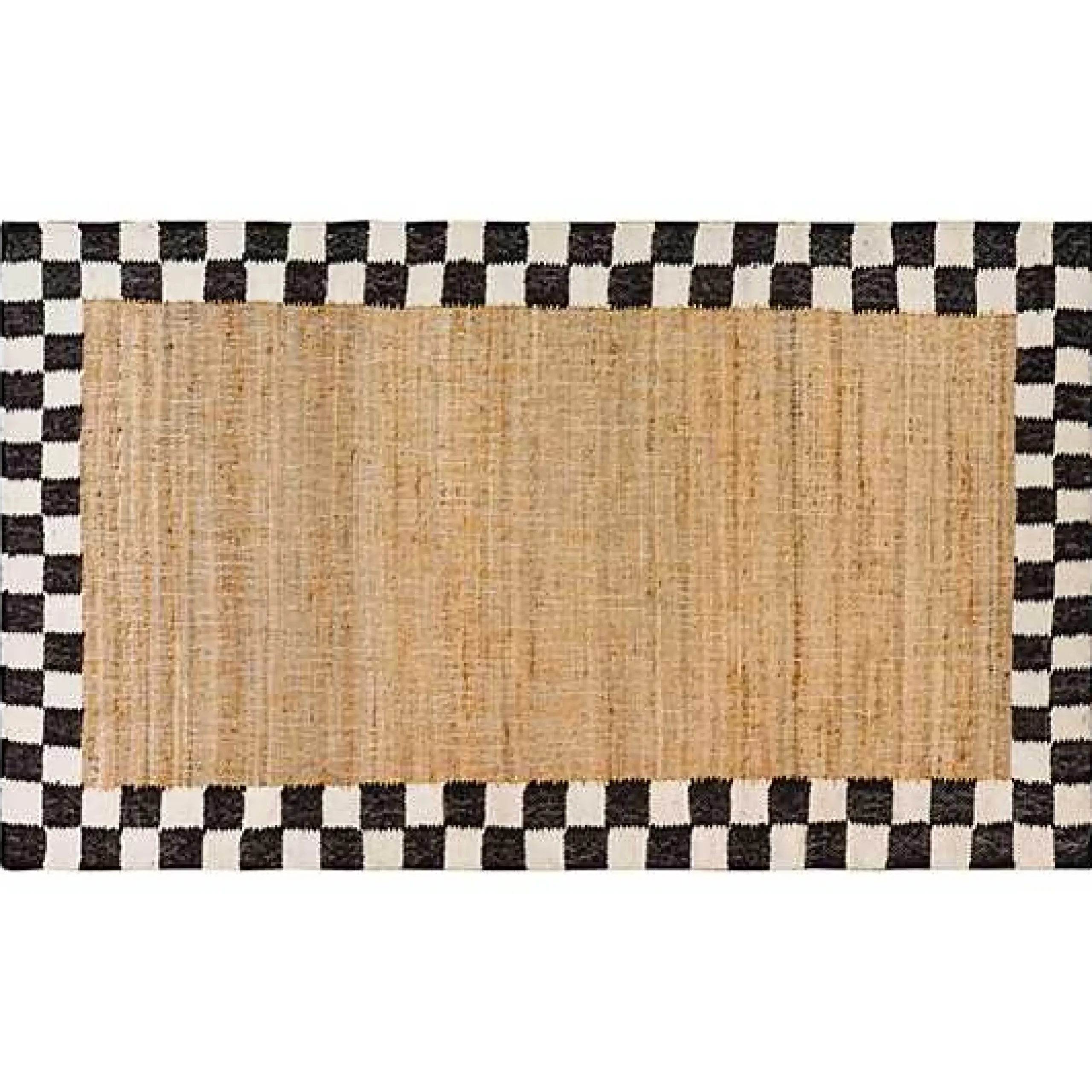This 3′ x 5′, woven rug features a center of sustainable jute, bordered by black and white wool checks. So versatile, itrsquo;s perfect for any room. MacKenzie-Childs