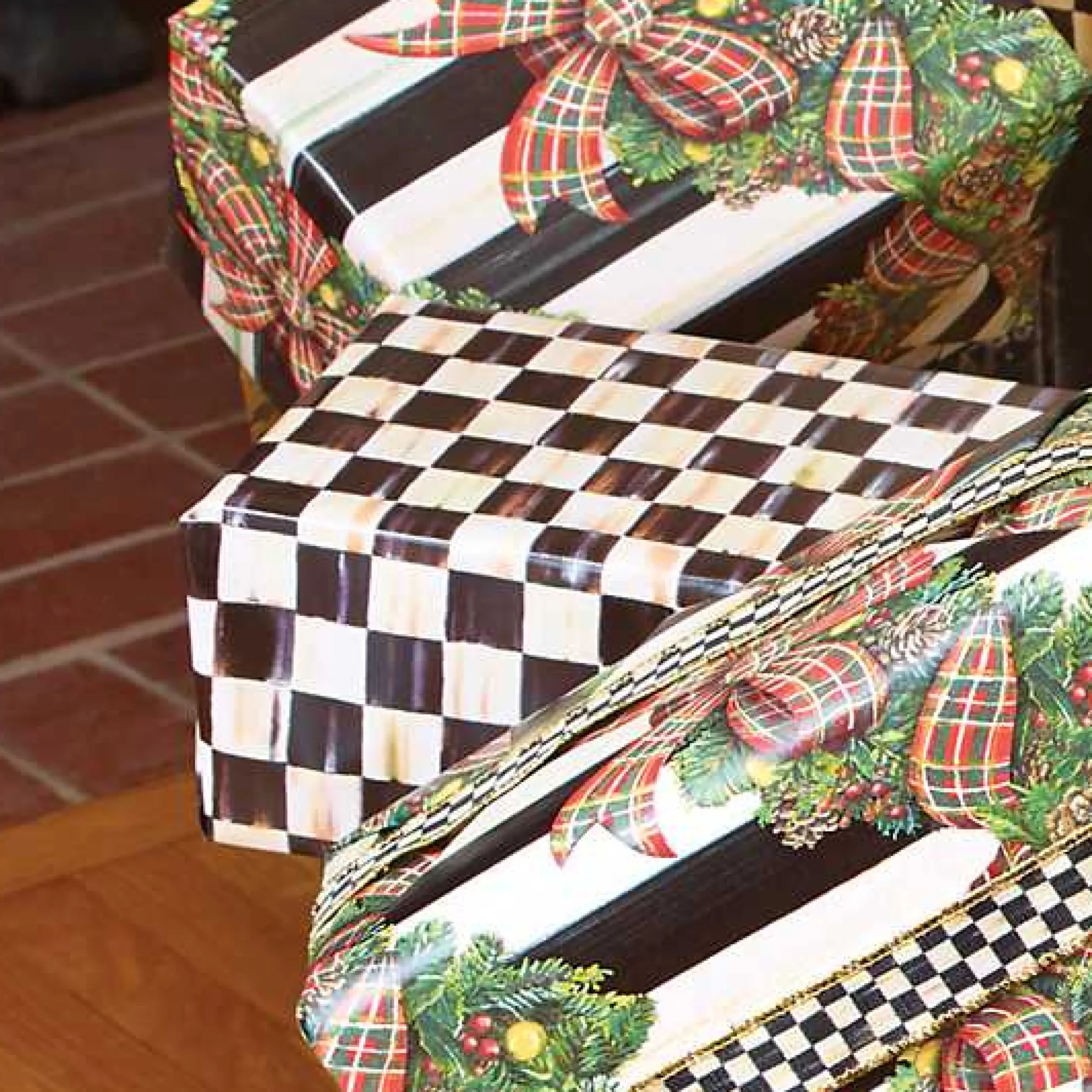 Add the perfect finishing touch to a gift of MacKenzie-Childs with Courtly Check® Gift Wrap, which features our signature pattern printed on wrapping paper. Set of two continuous rolls.