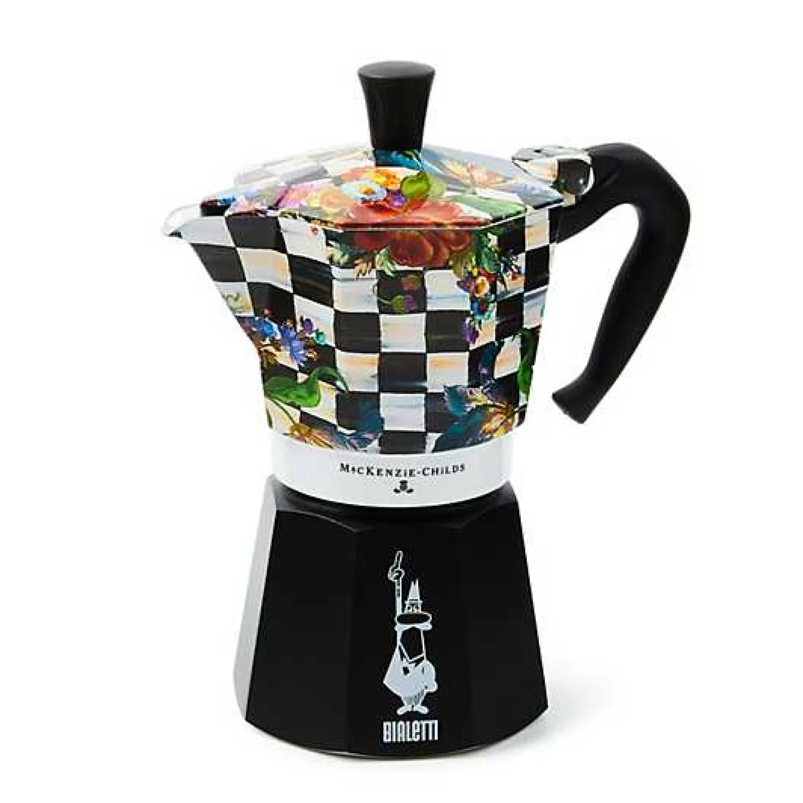 lt;pgt;Make rich coffee or espresso on your stovetop with the Courtly Flower Market 6 Cup Moka Pot. This Italian-made piece, crafted of durable aluminum with a stay-cool handle and knob, combines the form and function of the iconic Bialetti Moka coffee pot with the freshness of our floral and signature check pattern.lt;/pgt; MacKenzie-Childs
