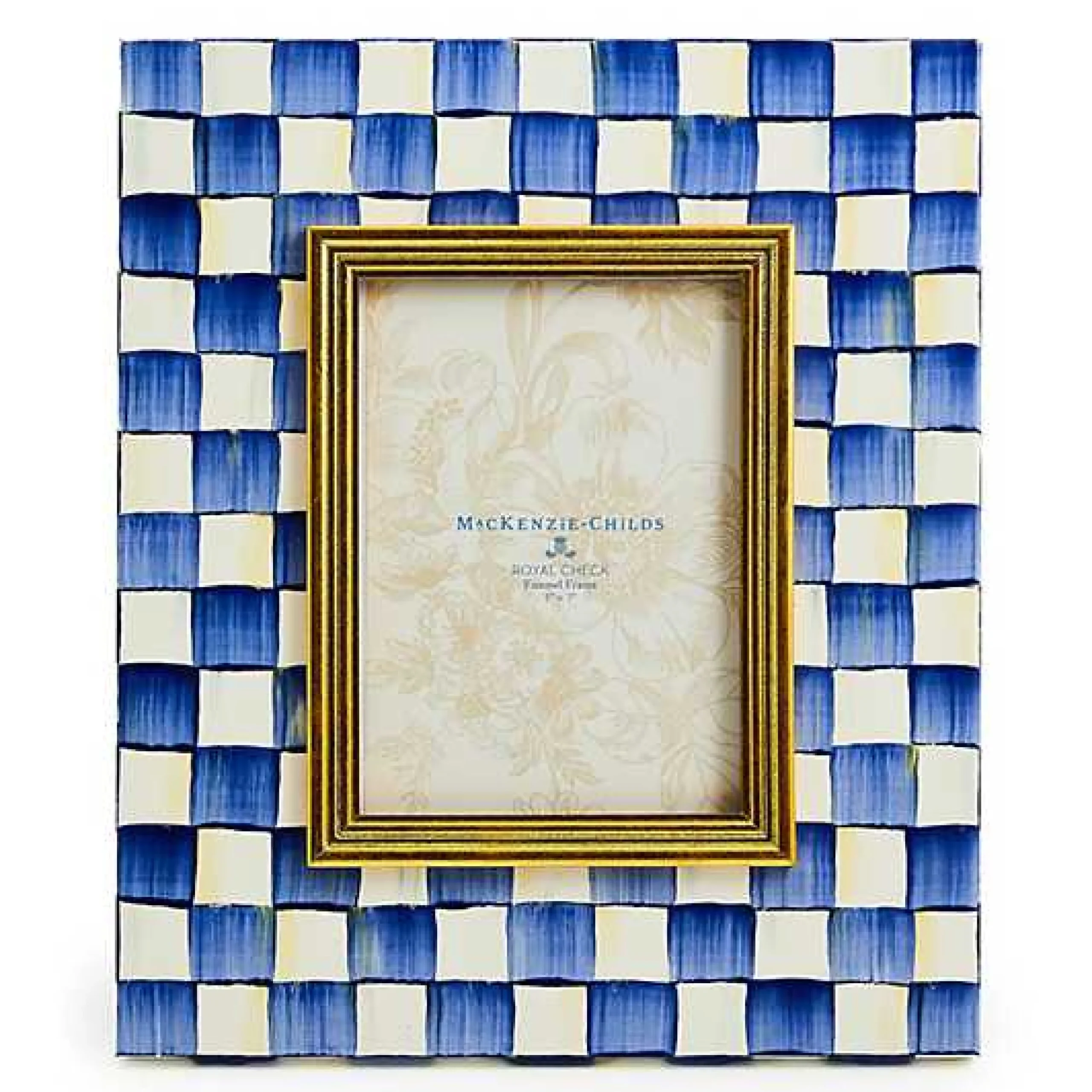 Wersquo;ve yet to find a photograph that doesnrsquo;t look fabulous in a Royal Check 5quot; x 7quot; Frame. Pepper this into your family photo gallery or give one as a standout gift for a friend. Steel underbody with hand-painted Royal Checks. Backing is one color of linen with a brass logo plate. MacKenzie-Childs