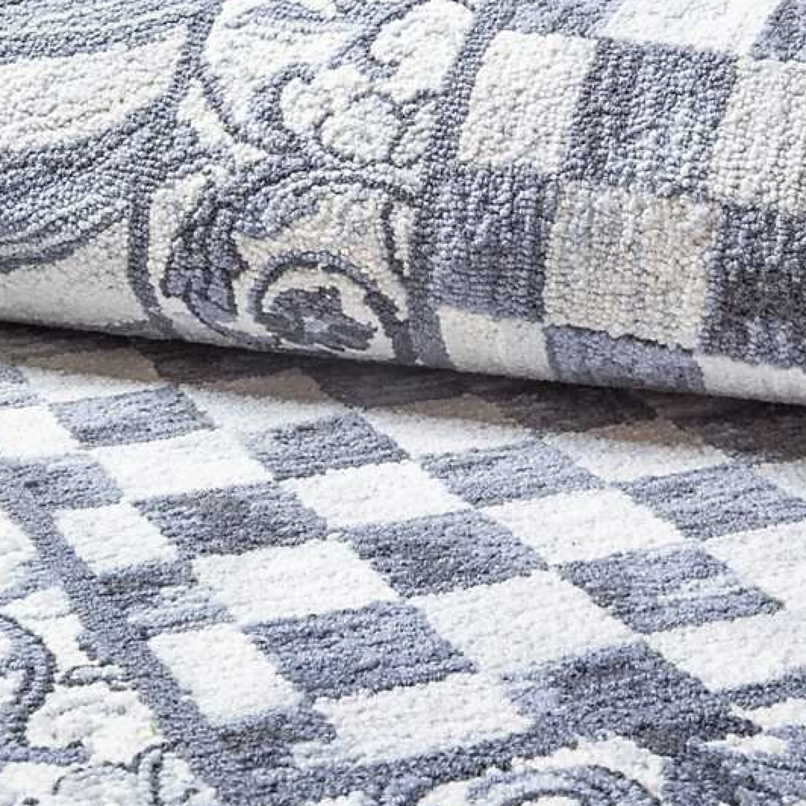 The hooked wool 8′ times; 10′ Sterling Check Rug is a grey-cious version of our classic Courtly Check Rug, featuring a blend of rich colors and playful patterns, including stripes and our charming grey check. A fun addition to a bedroom, entry, or kitchen, itrsquo;s sure to add a bit of our signature style wherever you may need it. MacKenzie-Childs