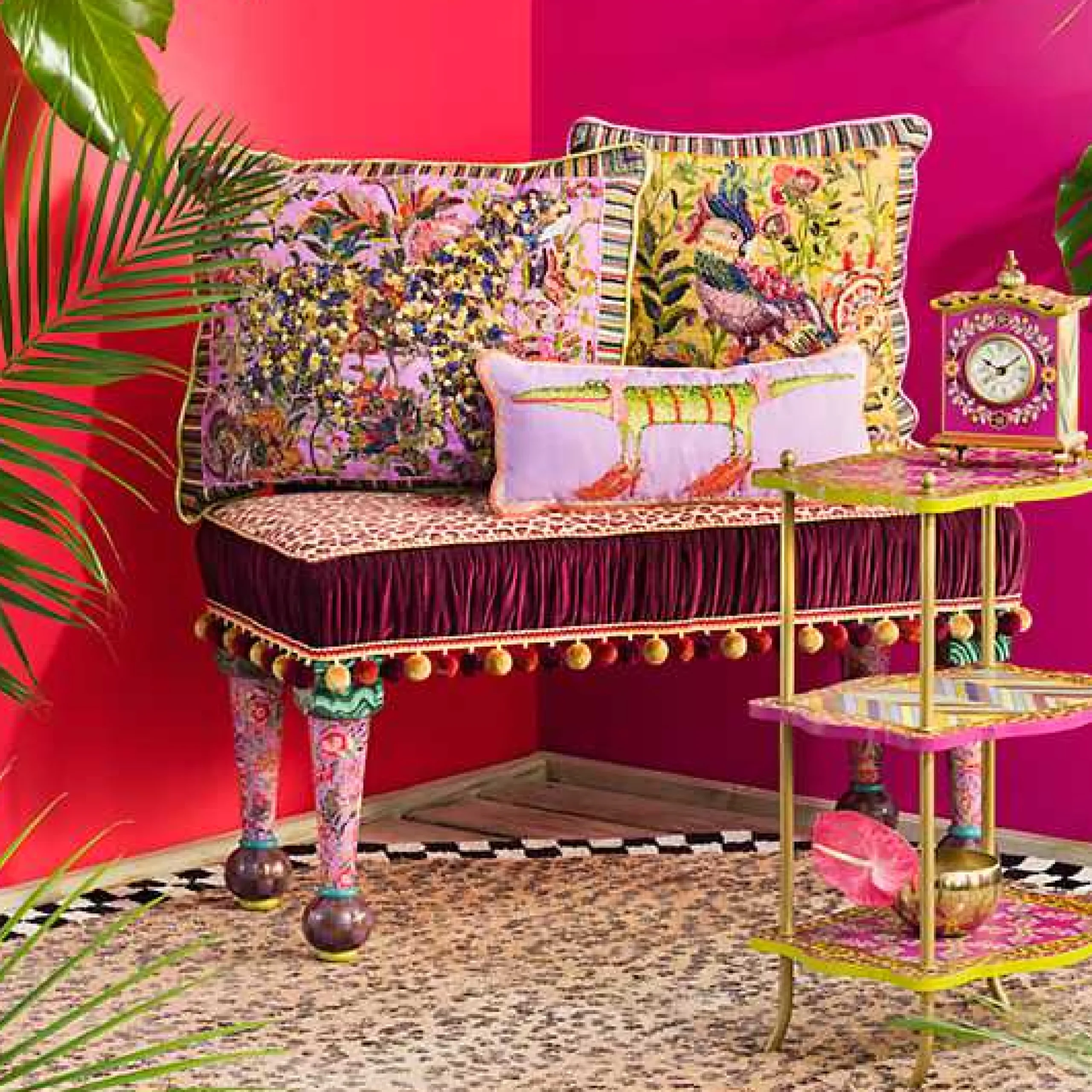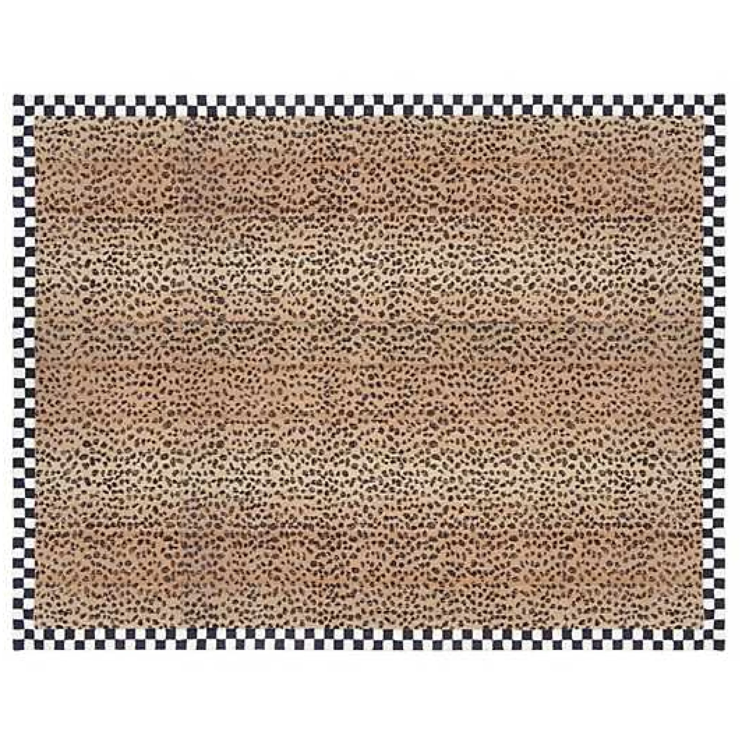Add a bit of animal magnetism to your floors with our 8′ times; 10′ Cheetah Rug. Made of 100% wool, itrsquo;s hooked and tufted with a center of sculptural animal spots and finished with a black and white checked border. MacKenzie-Childs